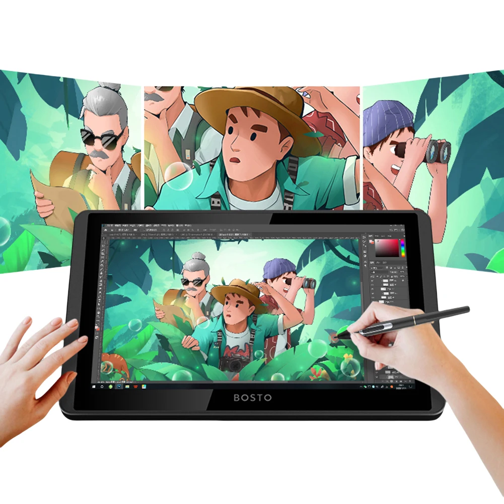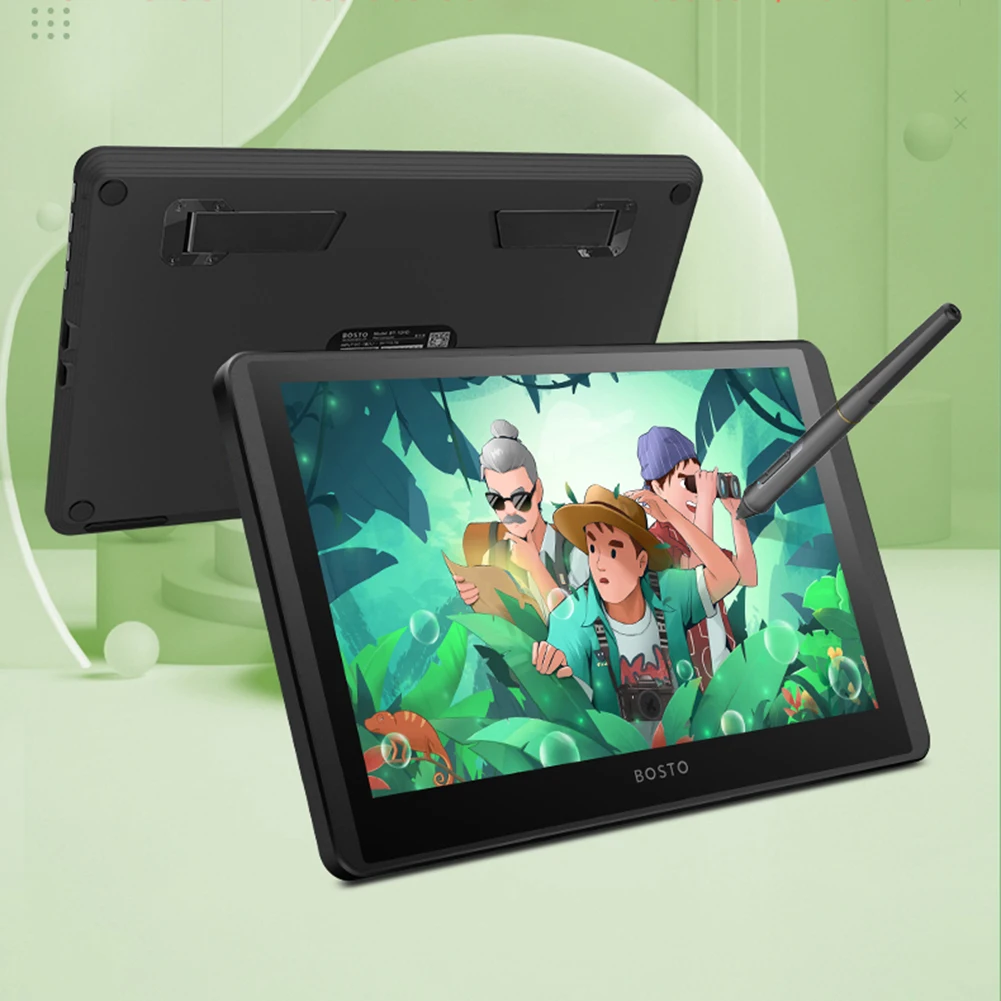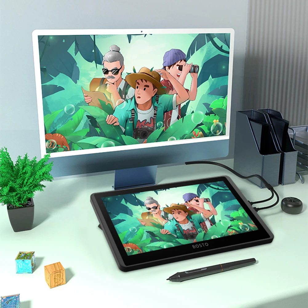Features: 1. 11. 6-inch IPS HD Screen with Vibrant Colors of Drawing Tablet Monitor: Enjoy a large and clear display with a resolution of 1366 * 768, 16.7 million rich color depth, 1000:1 contrast ratio, 250cd/㎡ brightness, and 178° viewing angle. 2. Battery-free Pen: The ergonomic design reduces fatigue from long-term use. The pen has 2 customizable buttons for convenient drawing. The magnetic side of the digital art tablet allows you to attach the pen, so you won’t forget it while carrying. 3. 8192 Pressure Levels for Precise Drawing: With 8192 pressure levels and a fast response time of 25ms, the digital art drawing pad provides a smooth and natural drawing experience. It also supports touch input for easy finger operation. Comes with a 2-in-1 USB cable with 4 different interfaces. Compatible with Windows 7 and above, compatible with Mac OS 10.11 and above. Can be connected to PCs/laptops. 4. Full Lamination HD Screen for Easy Use: The drawing tablet with screen features a gapless steel glass design, improving pressure sensitivity control accuracy and reducing visual deviation. The foldable all-metal stand allows you to tilt the tablet up to 19° for a comfortable position. 5. Wide Application Compatibility: Drawing tablet with screen is perfectly compatible with art software such as Photoshop, SAI, Clipstudio, Sketchbook, Artrage, CAD, Adobe Illustrator, Painter, Flash, and C4D. Ideal for digital illustration, design, animation, digital signatures, online education, and more. Includes 8 pen nibs, nib remover, cleaning cloth, glove, tablet protective case, 2-in-1 USB cable, battery-free pen, and quick guide. Specification: Note: