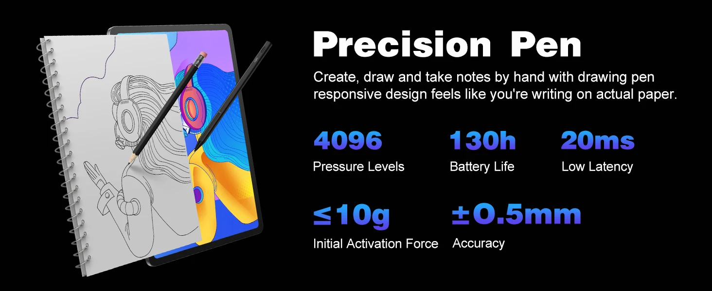 3. Powerful Performance and Portability: Equipped with a high-performance 6nm octa-core processor, this drawing tablet delivers smooth performance. With an ultra-thin design at 6.95mm and lightweight at 760g, it’s easy to carry around for on-the-go creativity.