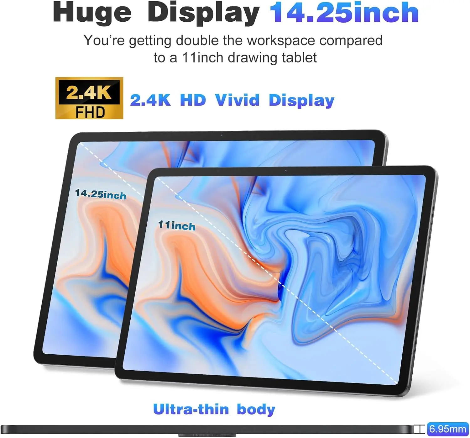 2. Standalone Drawing Tablet with 2.4K Display: The FUN DRAWING PAD offers a 14.25-inch large screen with a 2.4K display, perfect for detailed digital art without the need for a computer. Its standalone capability and Android 14 operating system provide a seamless drawing experience.